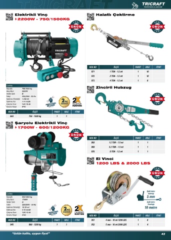 Kaldırma Yüksekliği 1-100 mt ÜRÜN